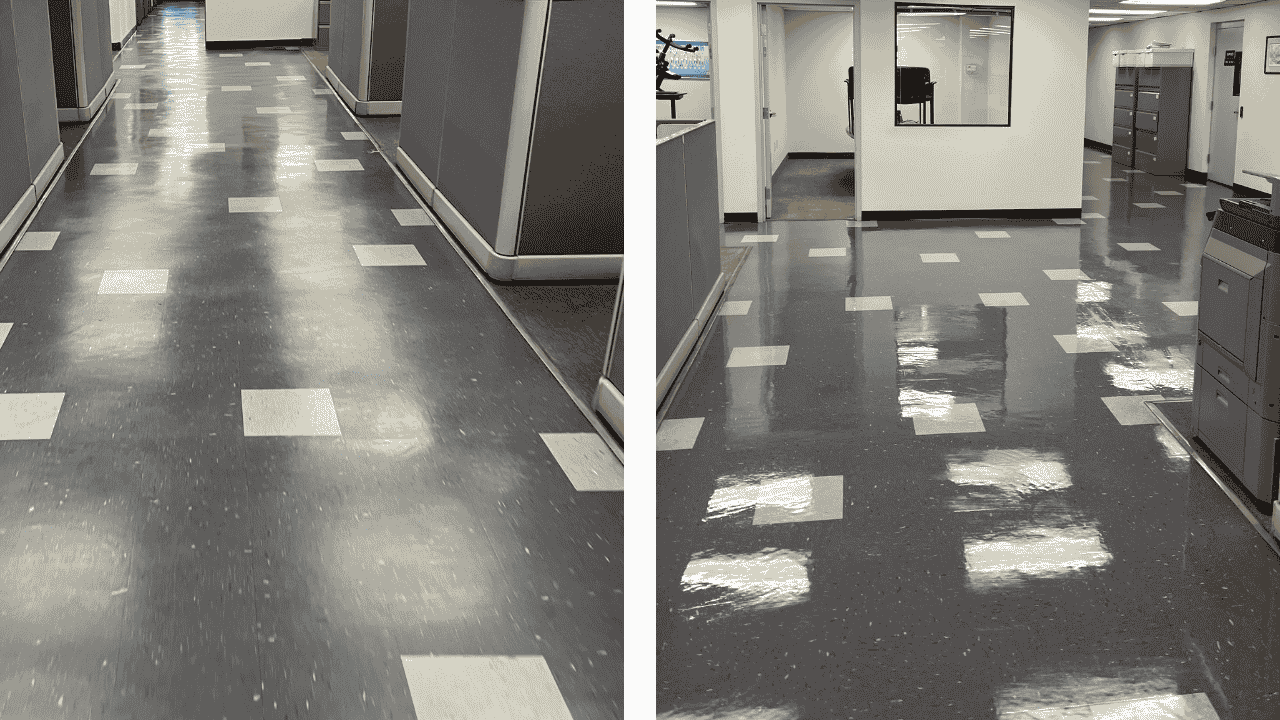Our Special Services Team transformed this office space. This facility is a high traffic manufacturing facility. We stripped and waxed their office space's floor to get it looking brand new!